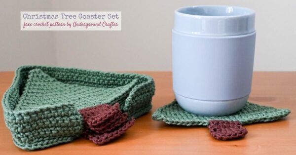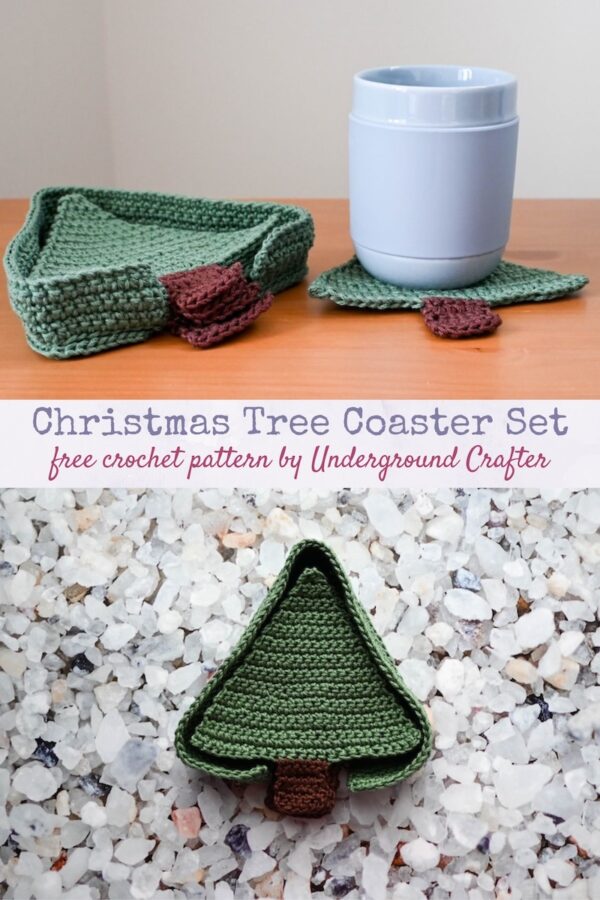 Each day through December 24, 2025, I’m sharing a 2-day free coupon code straight to your inbox for one of my crochet patterns that is perfect for winter or holiday crafting. The Christmas Tree Coaster Set is the December 21 featured pattern. Sign up now to get access to the free PDF! (When you sign up for this list, you get regular updates from Underground Crafter, and an update email about every pattern for the CALs I host as those patterns are released. When you sign up, you’ll also get access to my subscriber vault which includes exclusive free PDF patterns, a coupon code for your choice of any crochet or knitting pattern or ebook from my Ravelry shop, and coupon codes from other indie designers and crafts businesses.)