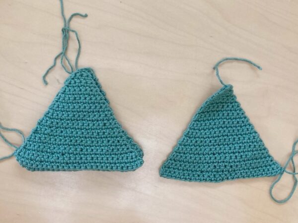 - Row 2: Turn, ch 1, sc in first st, 2 sc in next st. (3 sts)