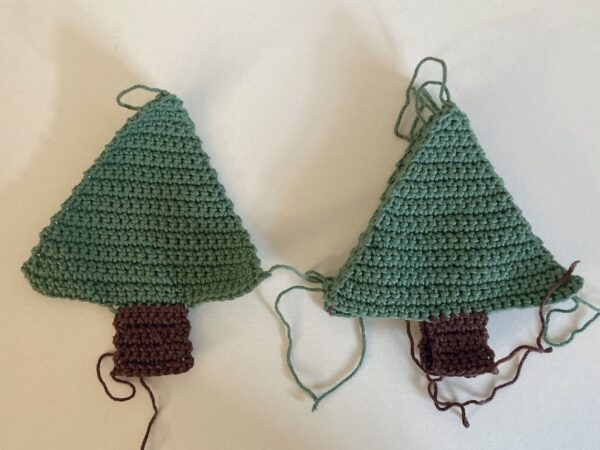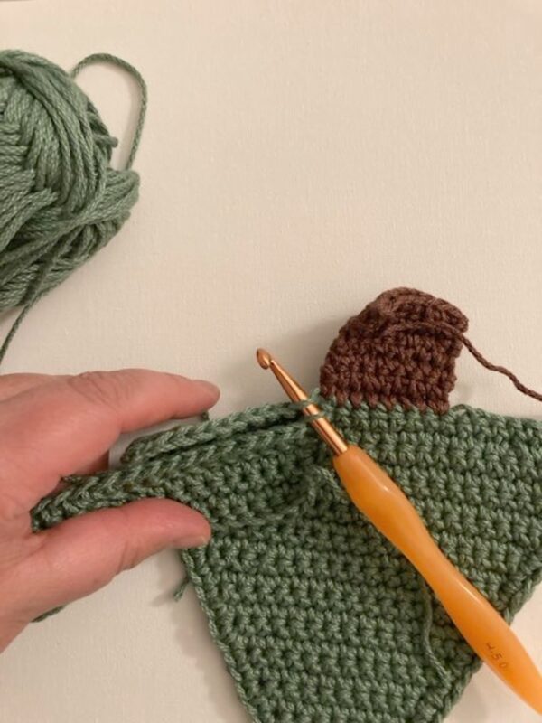 - Join with a single crochet seam (see Pattern Notes), working 1 sc through both layers in each st along edge of Long Rectangle, ending before the trunk. Fasten off CA.