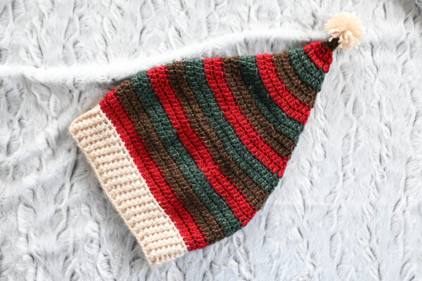 One of the very first patterns I designed was the Stocking Caps for a 2010 issue of Crochet World. My original design was based on an even longer stocking cap I crocheted for myself and used to wear on particularly cold days. In the past few years, I’ve designed several crochet stocking hat patterns including the Slouchy Santa Stocking Cap, the Elf Hat with Ears, the Polar Bear Stocking Cap, and the Feliz Navidad Christmas Tree Hat.