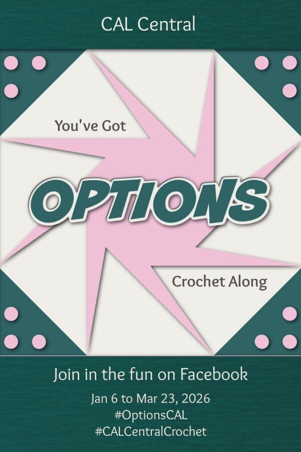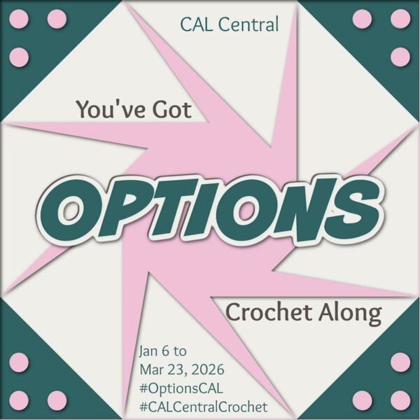 Welcome to the You’ve Got Options Crochet Along with CAL Central Crochet where you can crochet square patterns YOUR way! This crochet along includes 12 free crochet patterns by your favorite designers for squares in a 12″ size with the option to stop at 6″ size, plus ways to chat with other crocheters, and an end-of-CAL giveway with six different prizes, so read on for details!