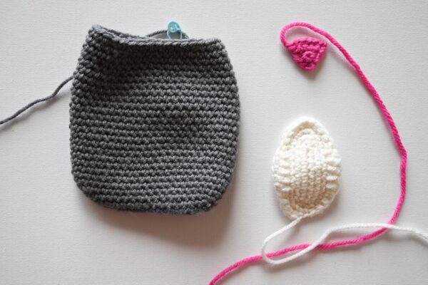 - Thread yarn needle with long yarn tail in CA from first Ear. Join Ear to front loop only in 6 sts at top of Body. With yarn needle, weave in ends on inside of Body. Repeat for second Ear.