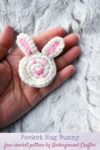 I’m sharing the sixteenth pattern in the 4th Annual International Crochet Month Blog Hop: a pocket hug bunny crochet pattern. The Pocket Hug Bunny adds comfort wherever you go. It’s perfect for stash busting, and it also makes a great sugar-free alternative for an Easter egg hunt. This pattern is forever free on my blog, but the PDF version is available for free download with coupon code through 10am Eastern on March 17, 2026 as part of the Blog Hop.