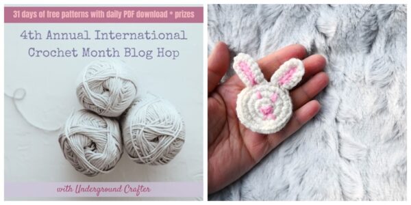 If you’re reading this blog post before 10am Eastern on March 17, 2026, you’re in luck! You can grab the Ravelry PDF version of the Pocket Hug Bunny for free with coupon code bunny2026 or you can add the pattern with coupon code to your cart HERE or by clicking on the International Crochet Month-Pocket Hug Bunny collage image below. Be sure your cart is set to $0 before checking out as there will be no refunds for accidental purchases.